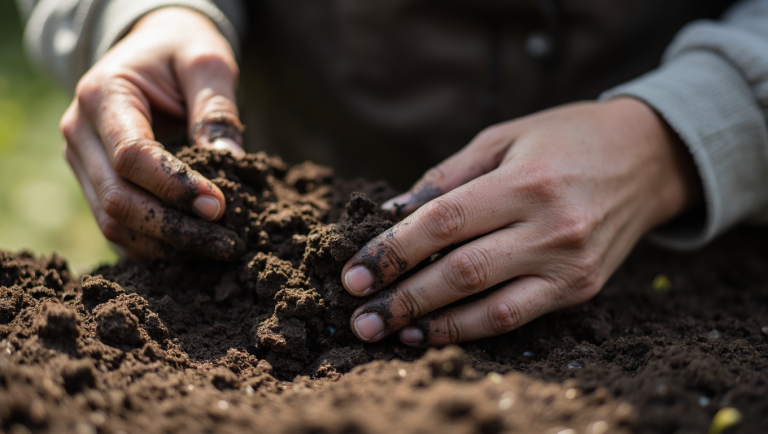 - Testează textura solului cu metoda „bulei de noroi”: umezește o mână de pământ și încearcă să formezi o bilă. Dacă se sfărâmă ușor, solul e nisipos; dacă se modelează, are suficientă argilă.
